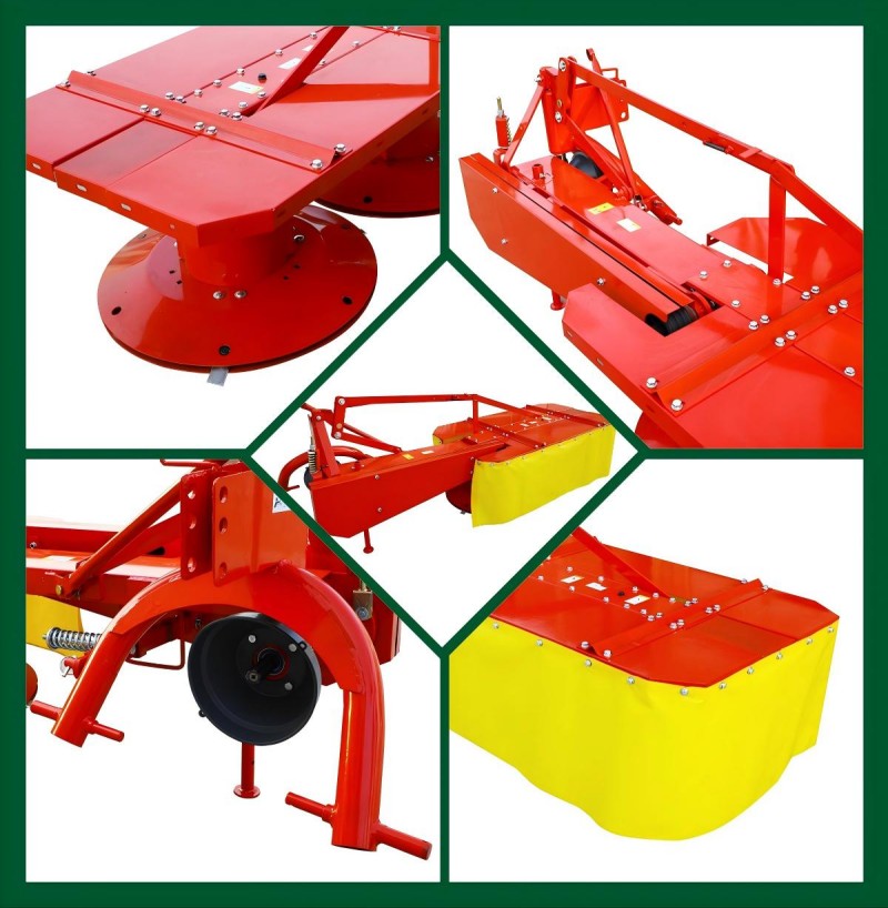Monterad trumklippare kan också kallas dubbel skivklippare. Varje trumma har tre klippknivar, som snabbt kan ersättas med enkla verktyg. Gräset som klipps av knivarna placeras mellan de två trummorna, en lös plats. Tre V-bälten överför kraft till ingångsväxelaxeln och sedan till huvuddrivaxeln, som i sin tur driver trumman genom avfasningsutrustningen. Det finns en separationsanordning på trumklipparen, som automatiskt fungerar när gräsklipparen träffar ett hinder. Detta skyddar trumman från skador.